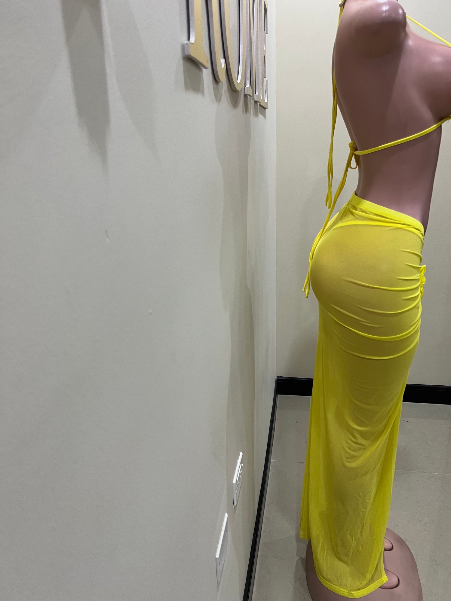 Cassie Flower 3 Pcs Mesh Skirt Set (Yellow)