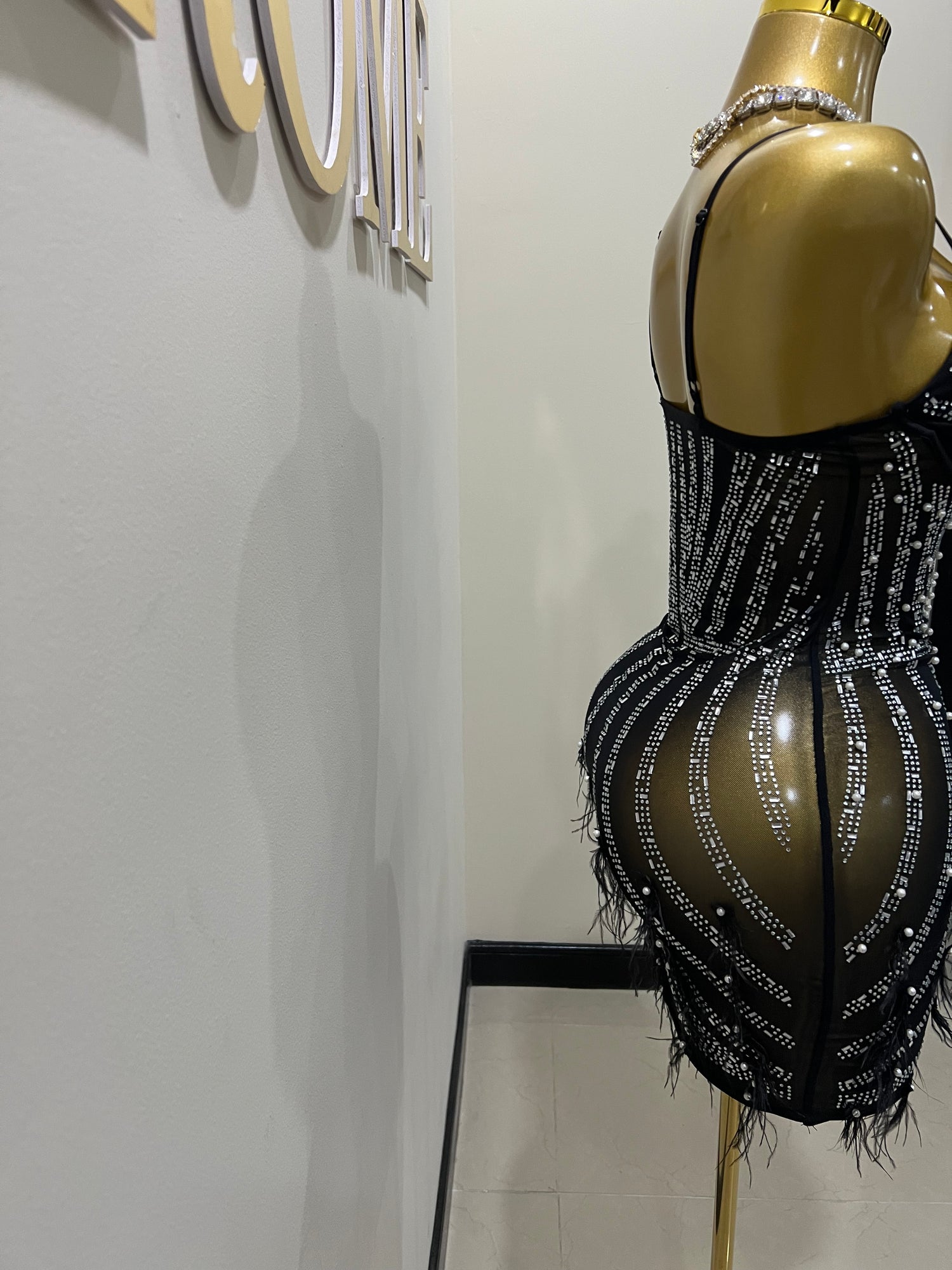 - The gold bbl mannequin is wearing size small.