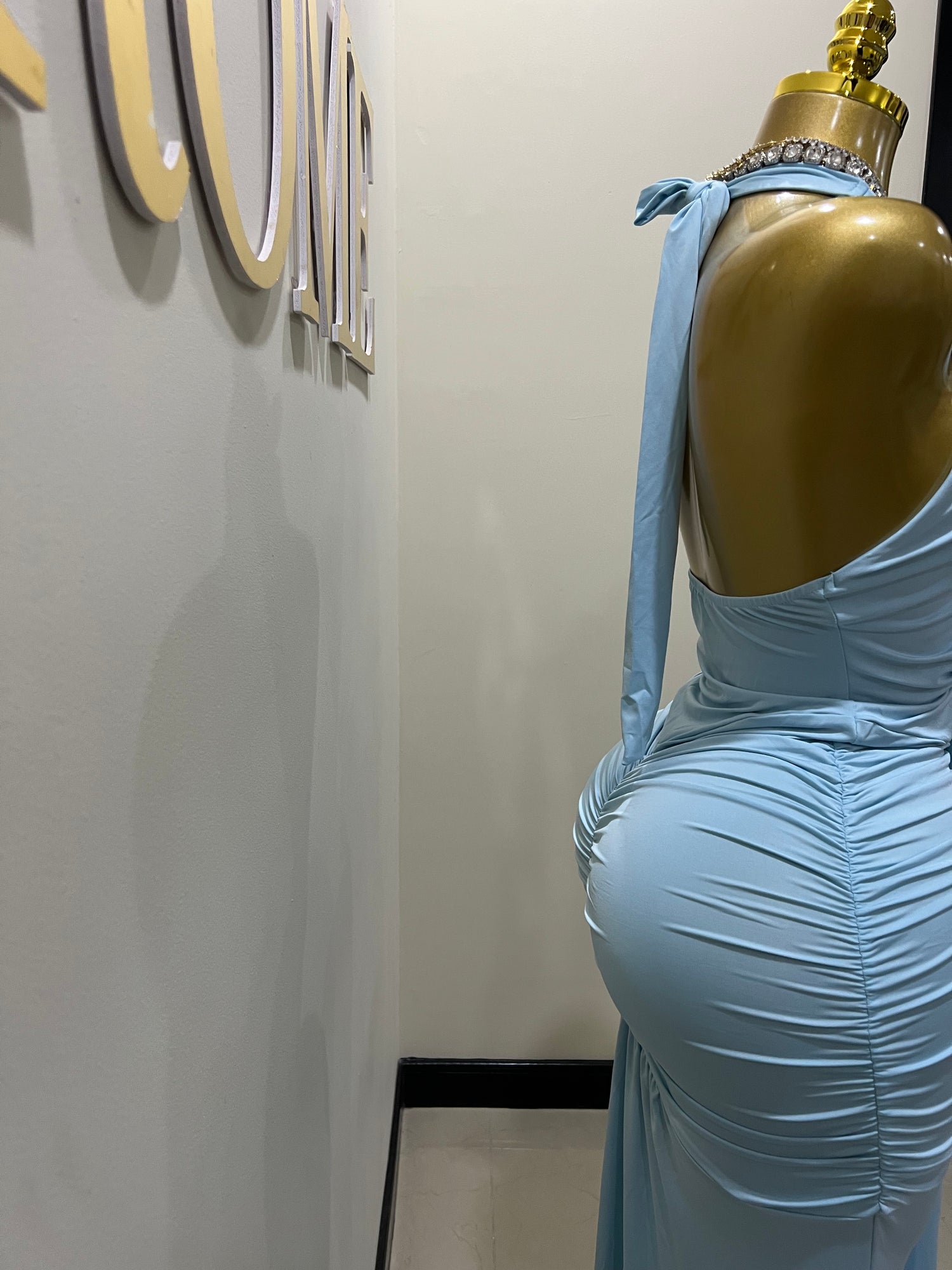 - The gold bbl mannequin is wearing size small.