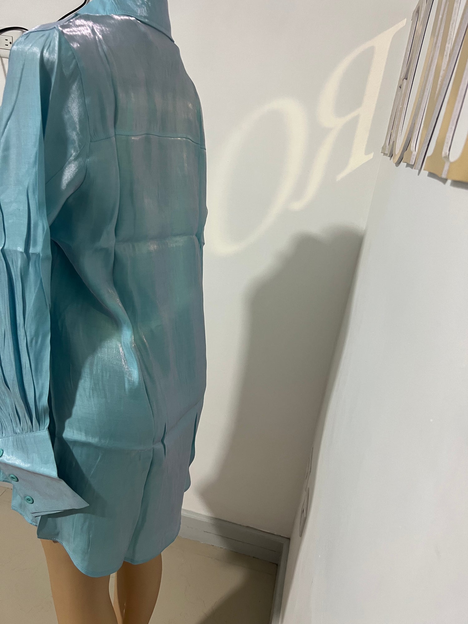 - Fits big/loose chic fit. Has stretch. Size small is on the mannequin.