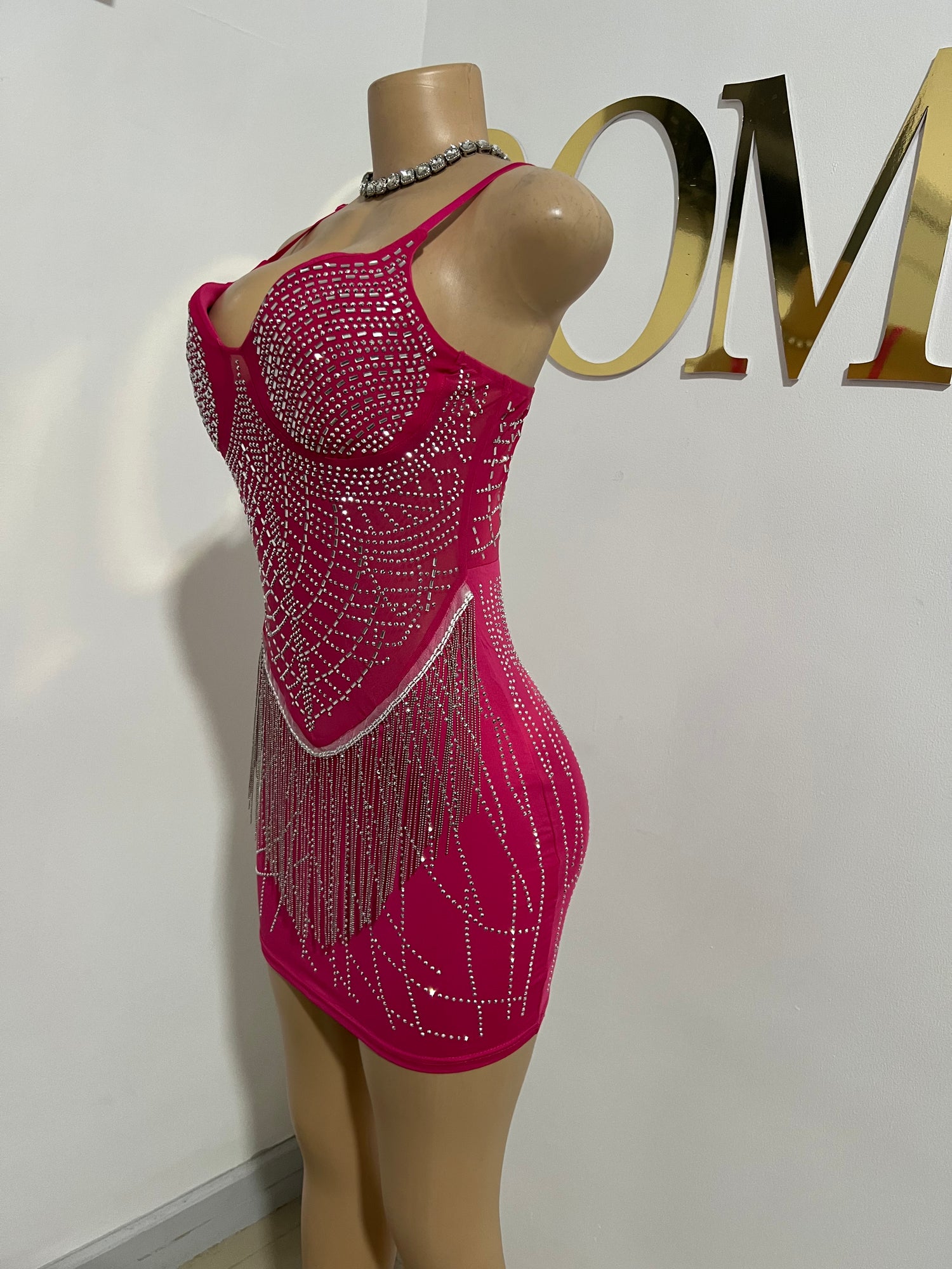 Gianna Fringe Crystal Dress (Pink)