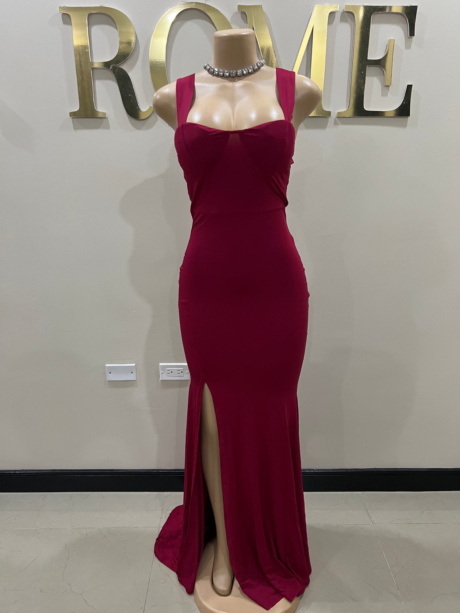 Kerry Ann Train Dress (Burgundy)