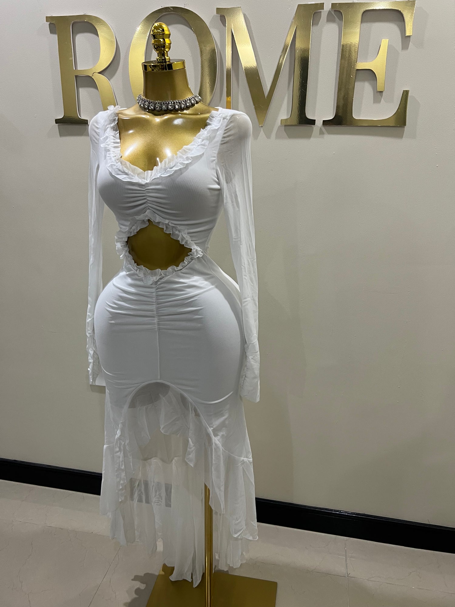 Mila Long Sleeve Dress (White)