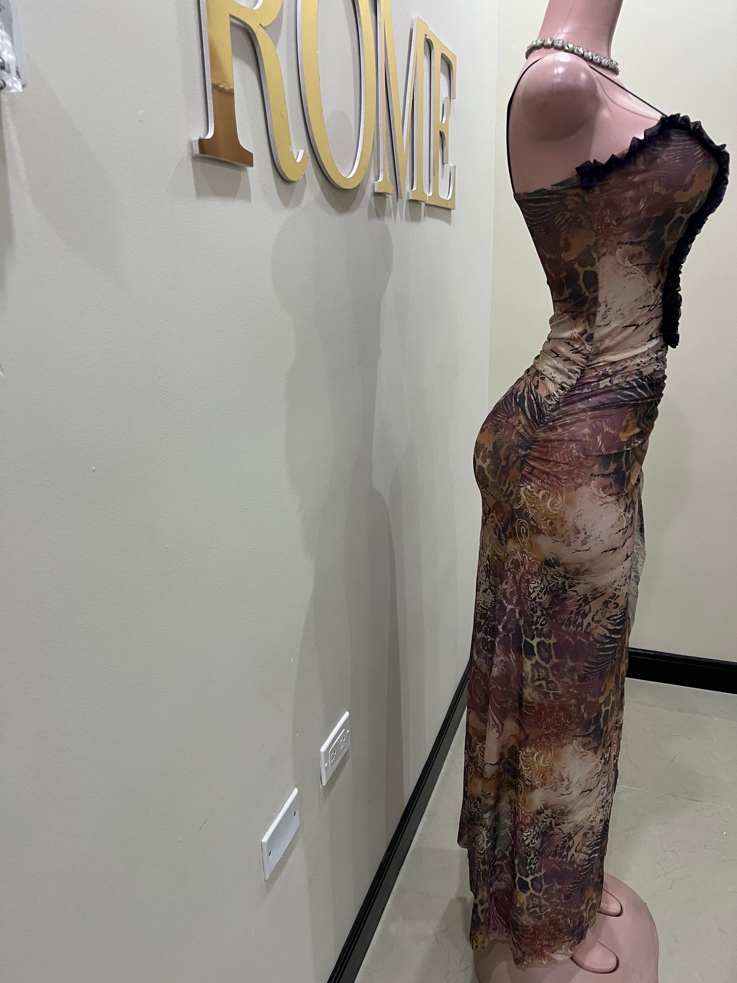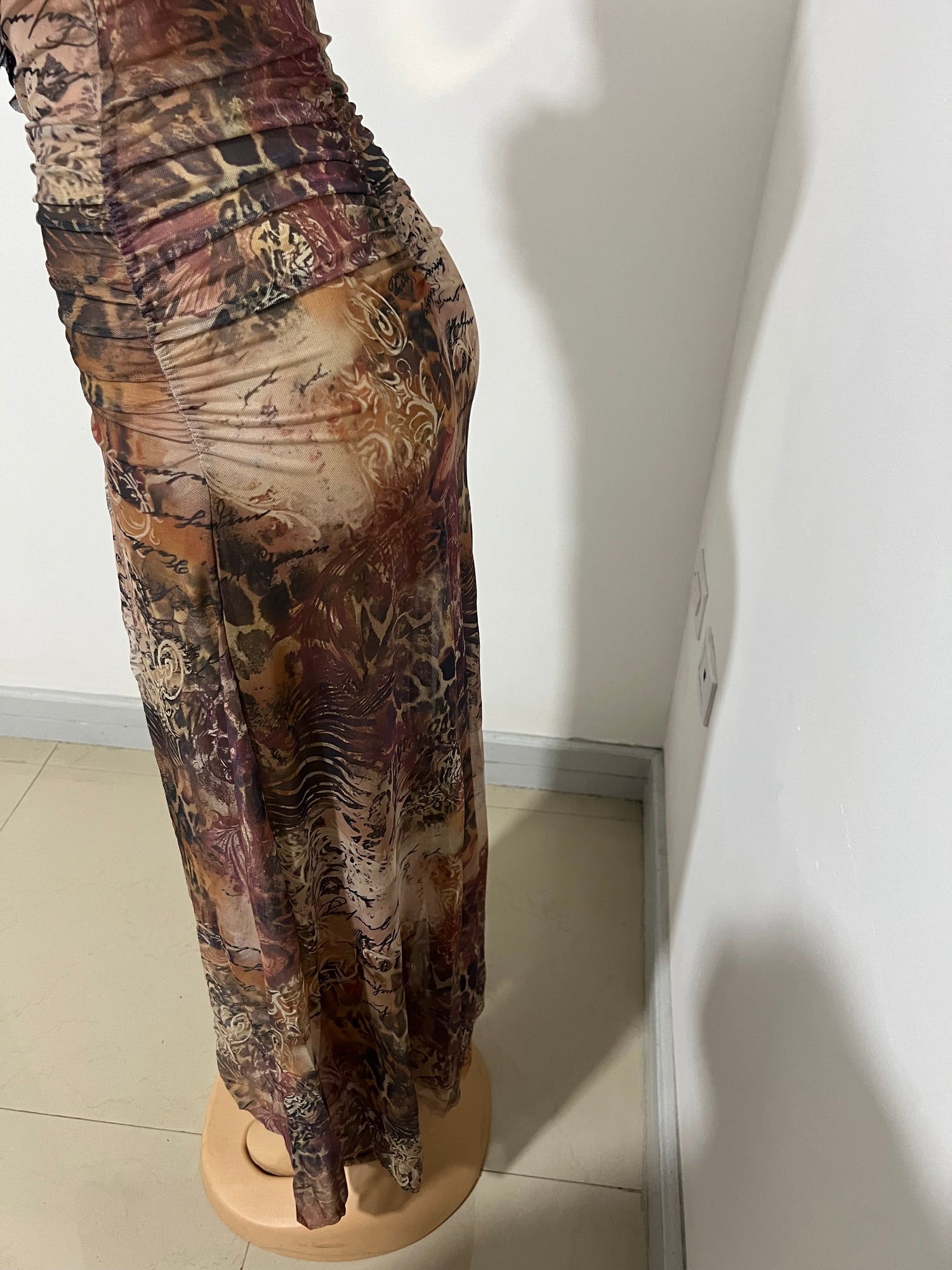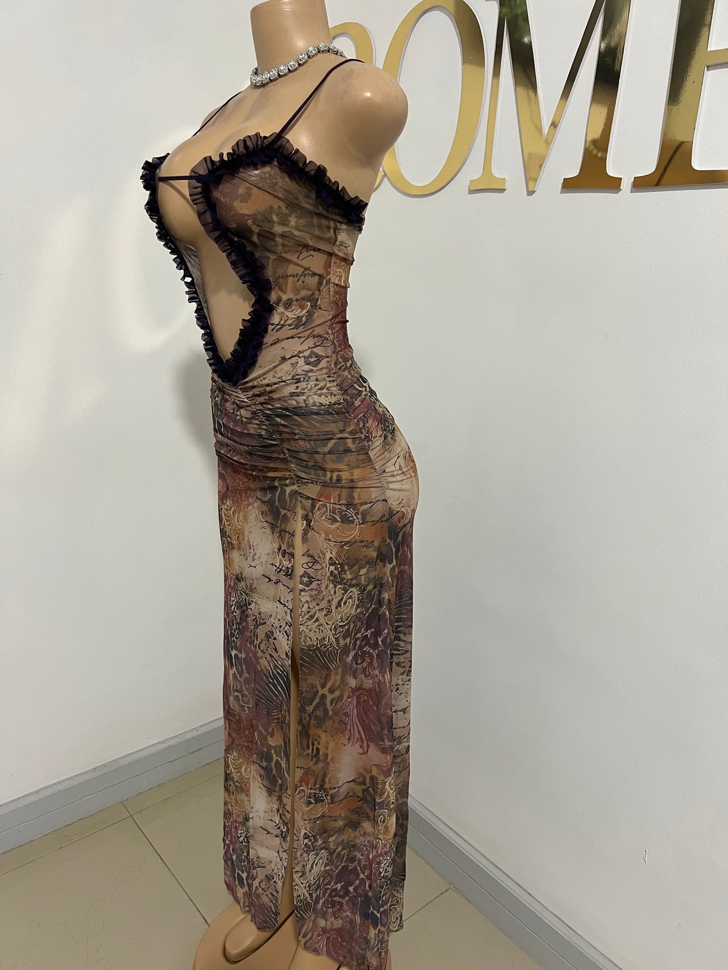 Mila Vibe Sheer Dress (Brown multi-colored)