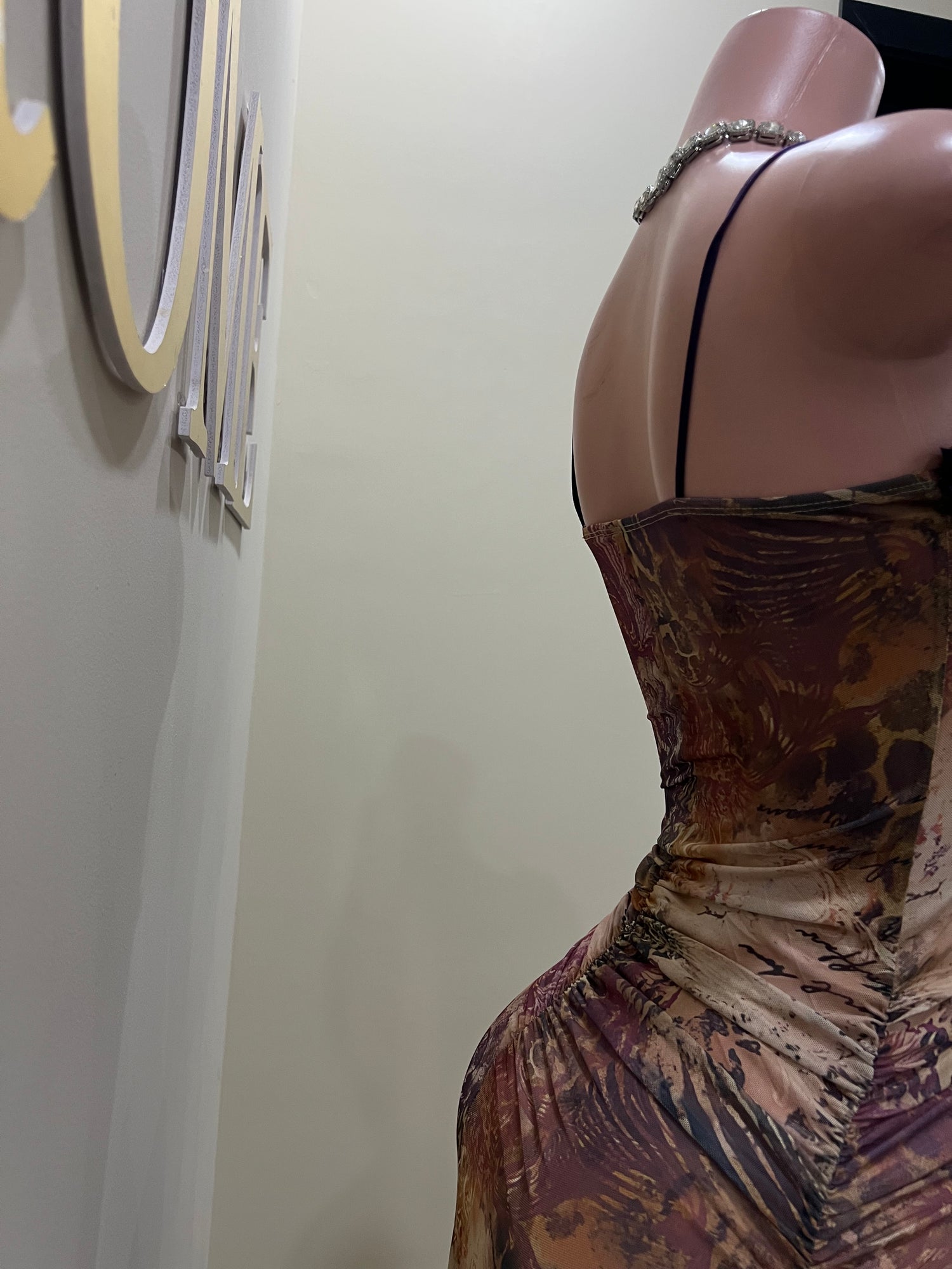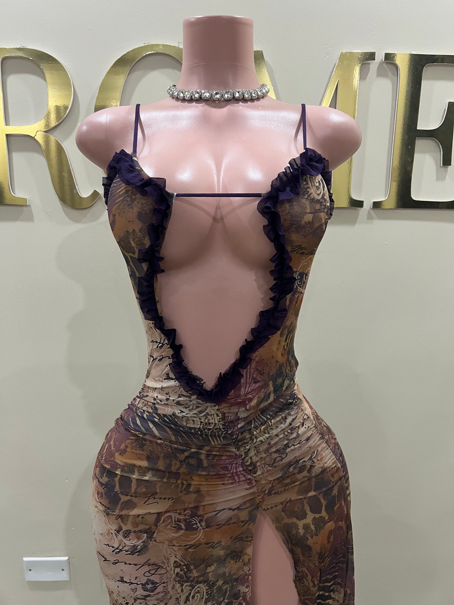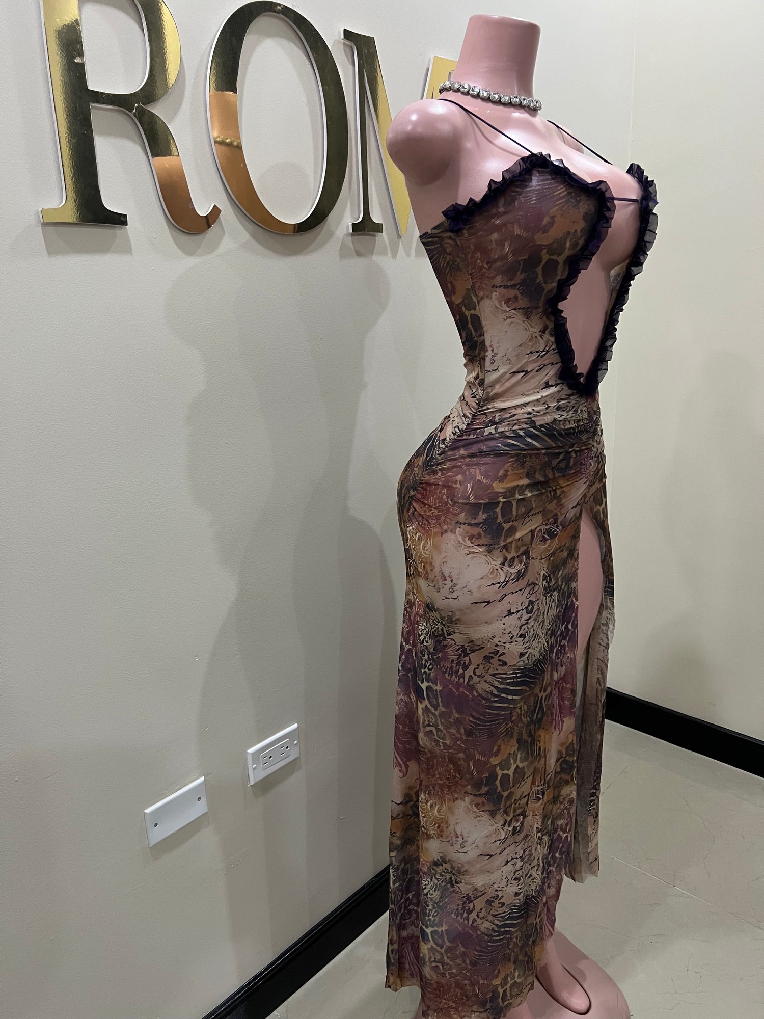 Mila Vibe Sheer Dress (Brown multi-colored)