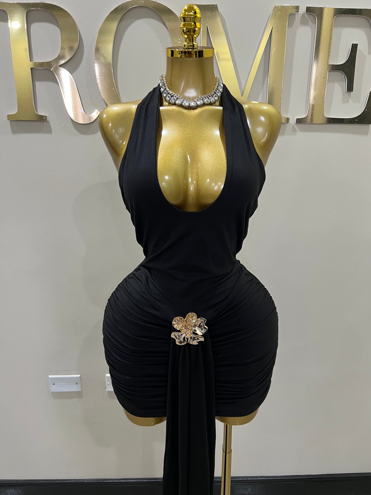 Nara Petal Short Dress (Black)