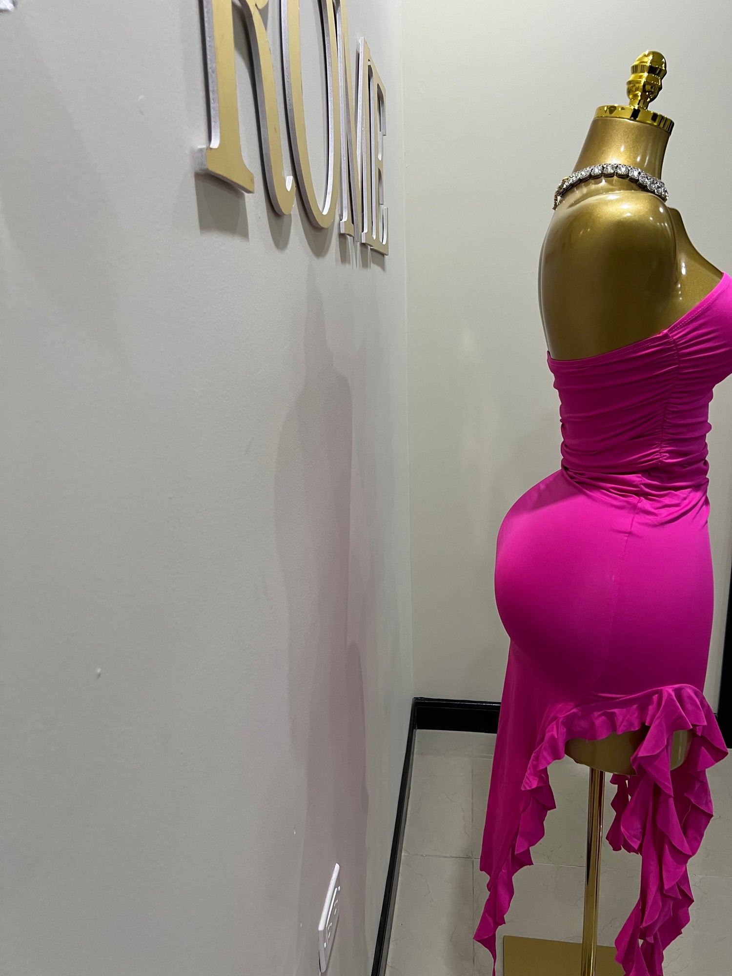 - The gold bbl mannequin is wearing size small.