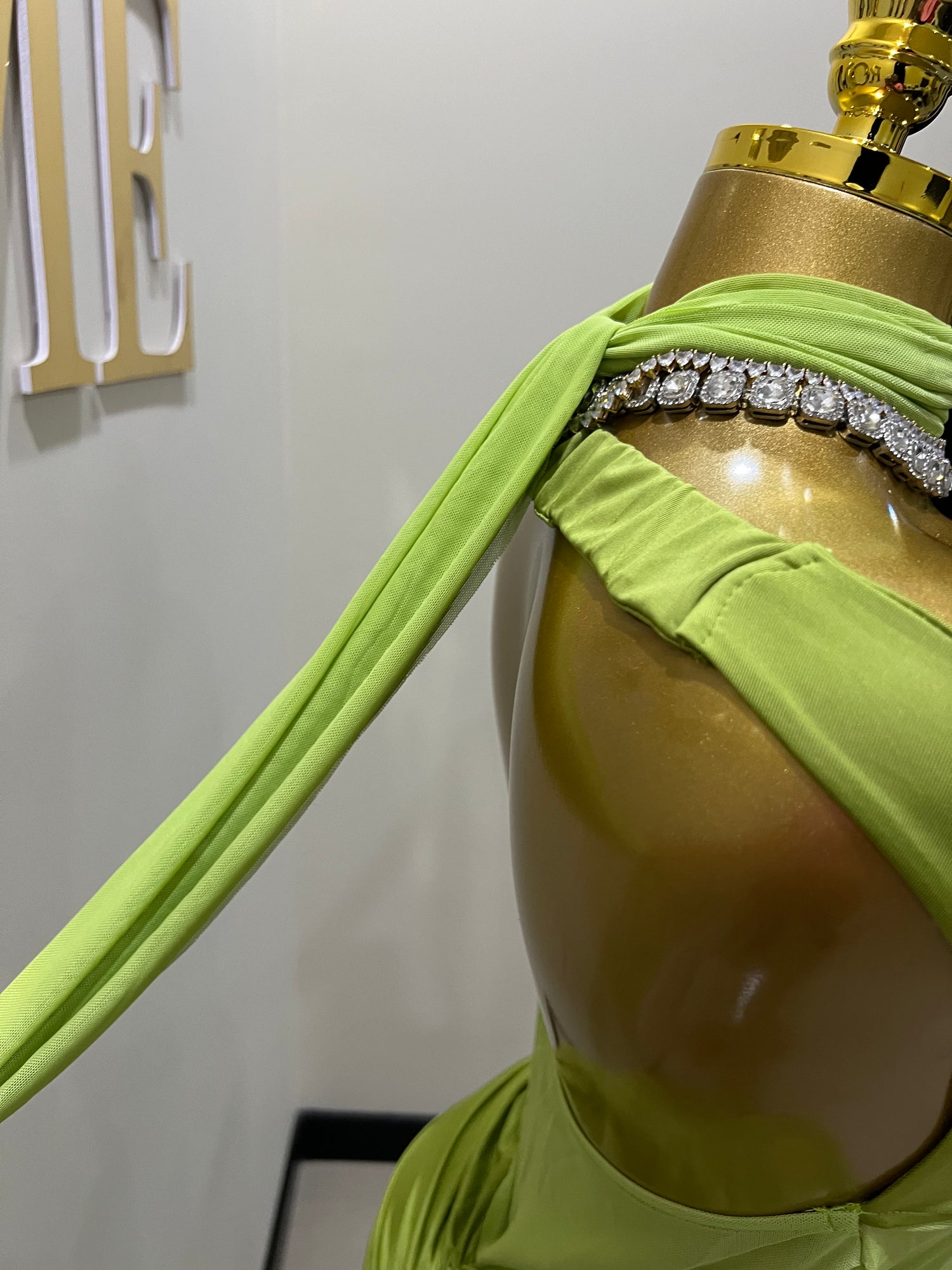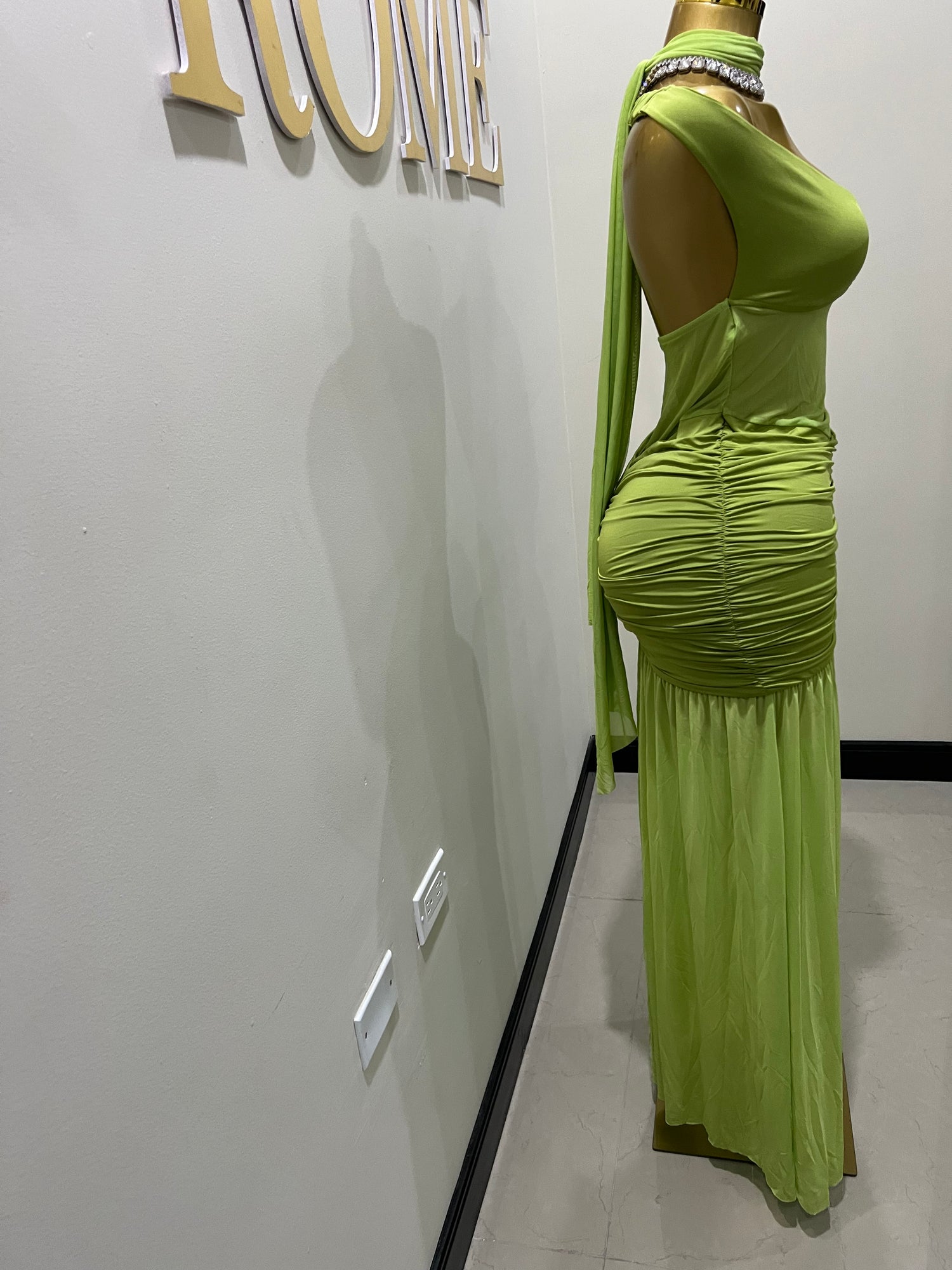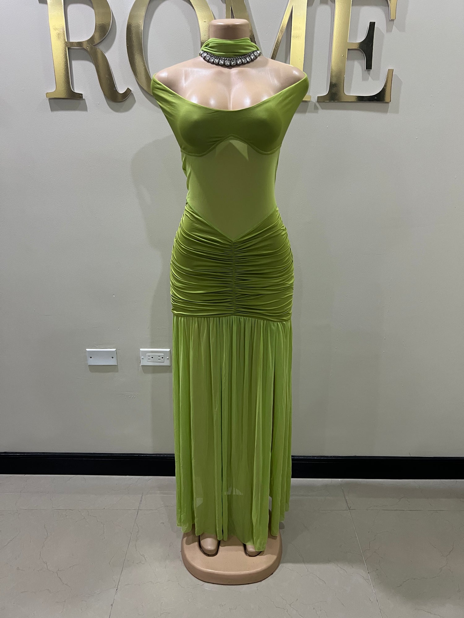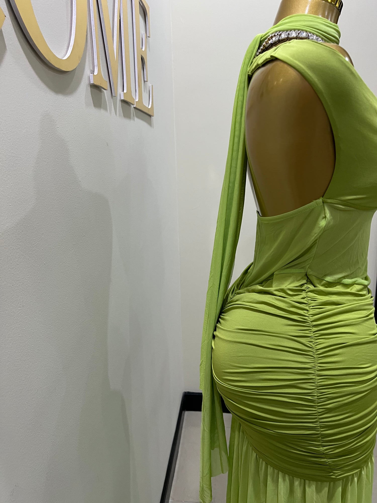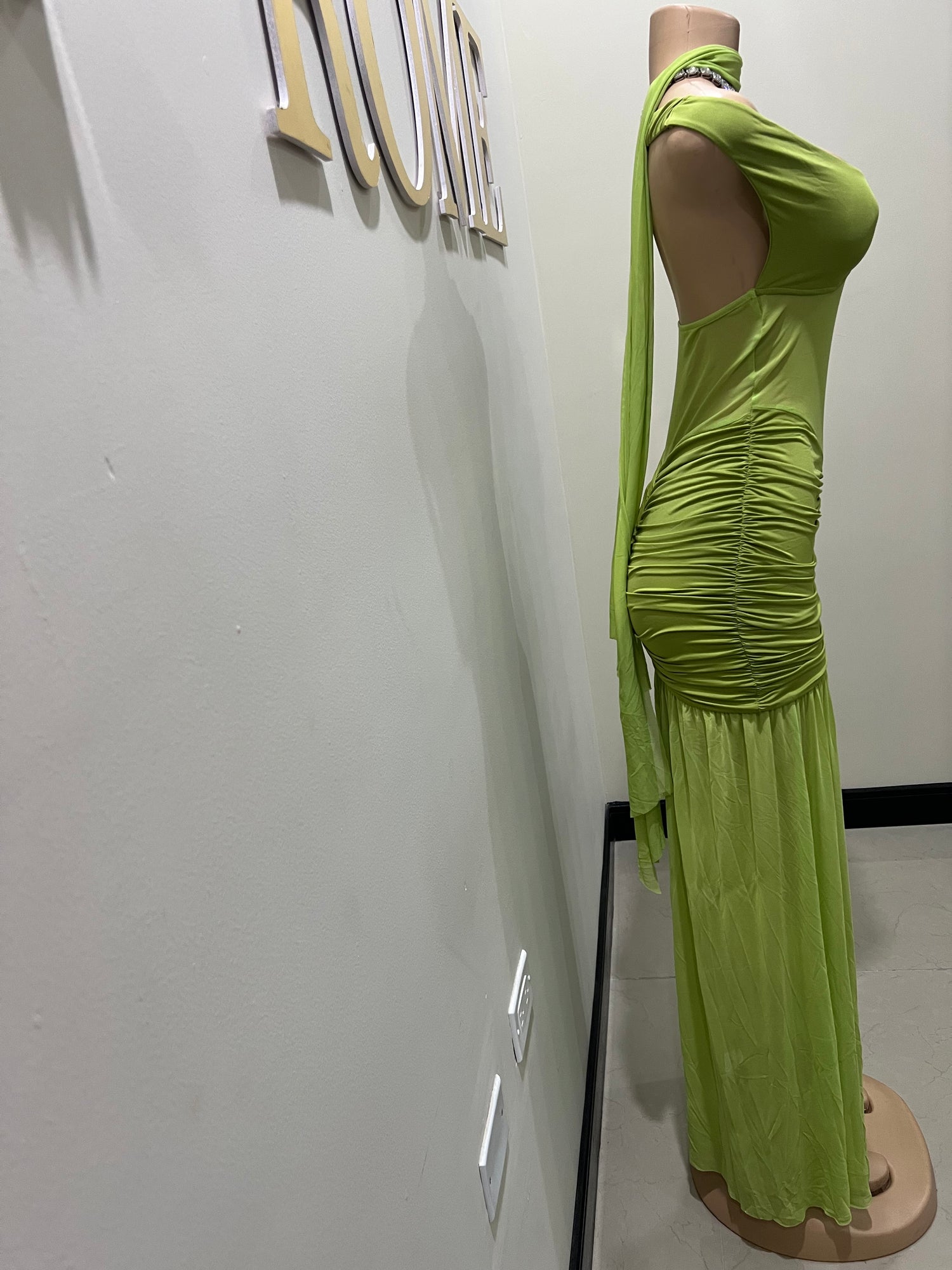 Off Shoulder Nara Split Dress with Scarf (Green)