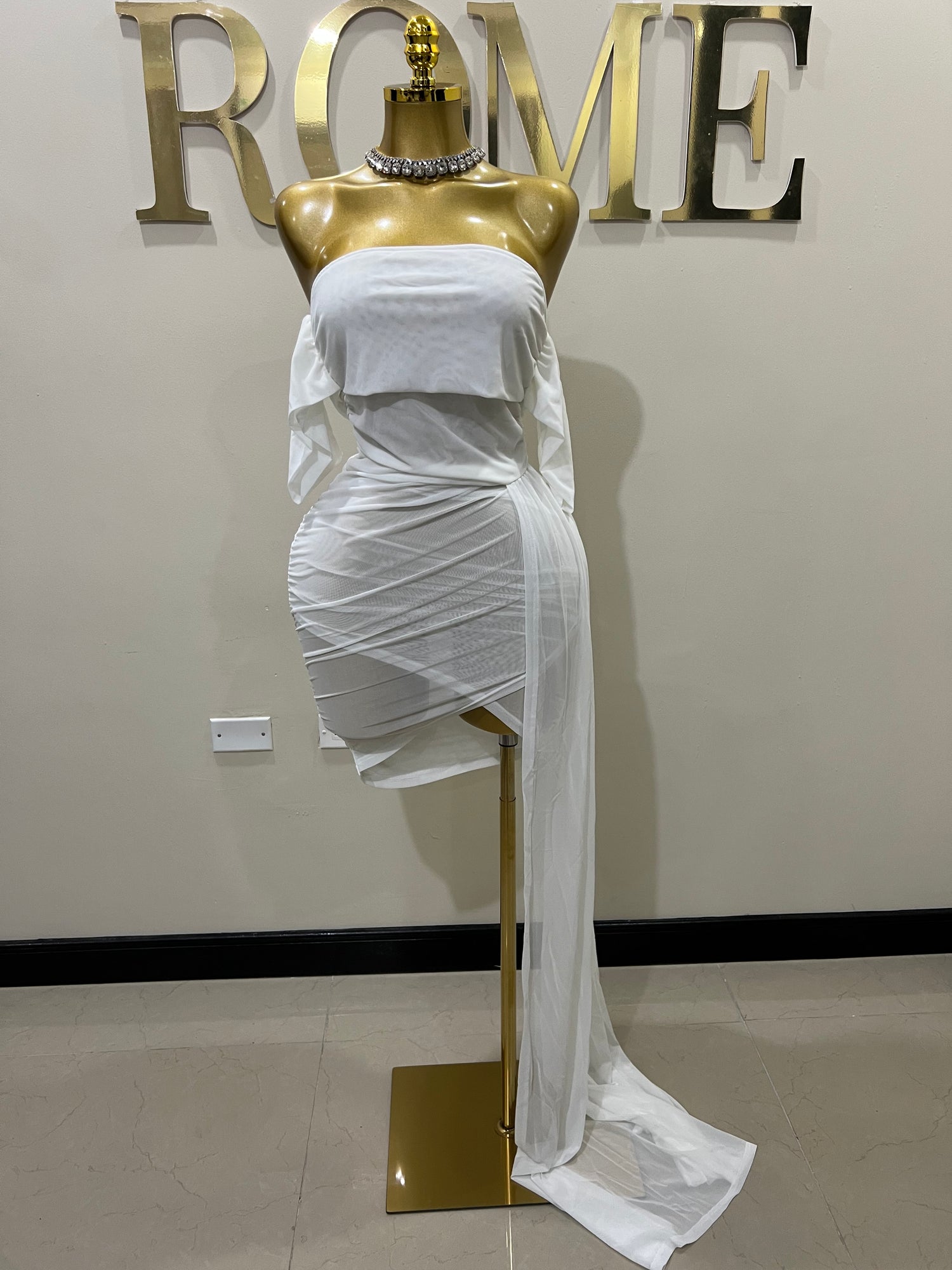 Porsha Allegra Mesh Dress (White)
