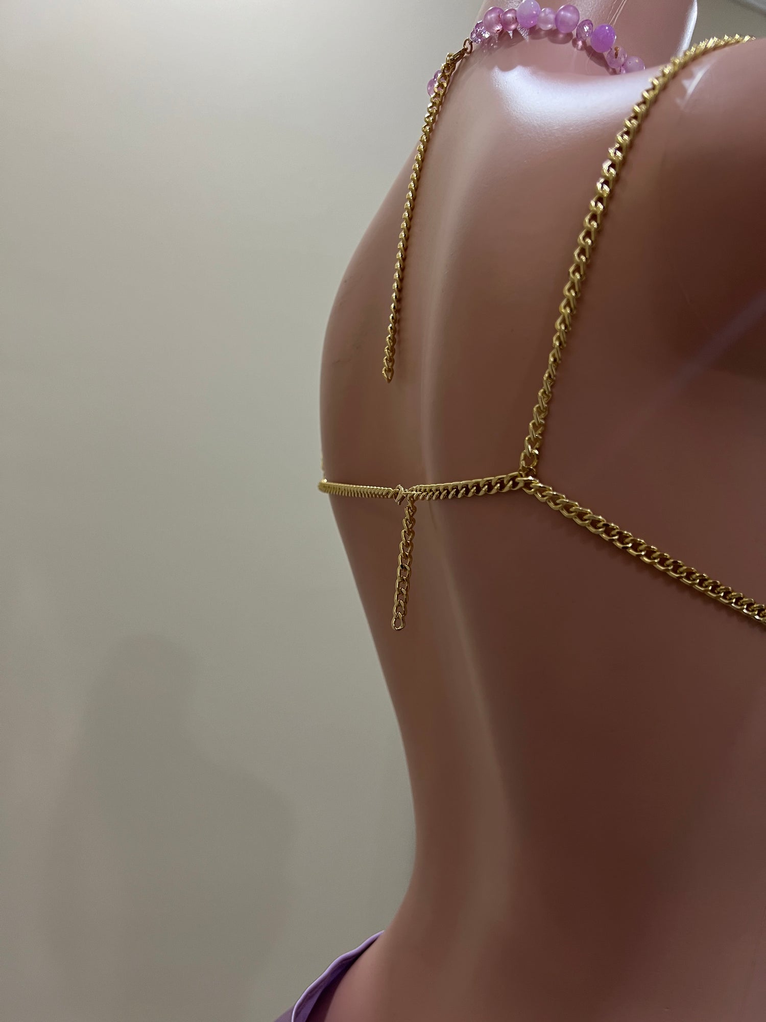 - Size large - the beaded section is 2 inches longer than the medium. That is, 1 inch extra length on each side of the breast.