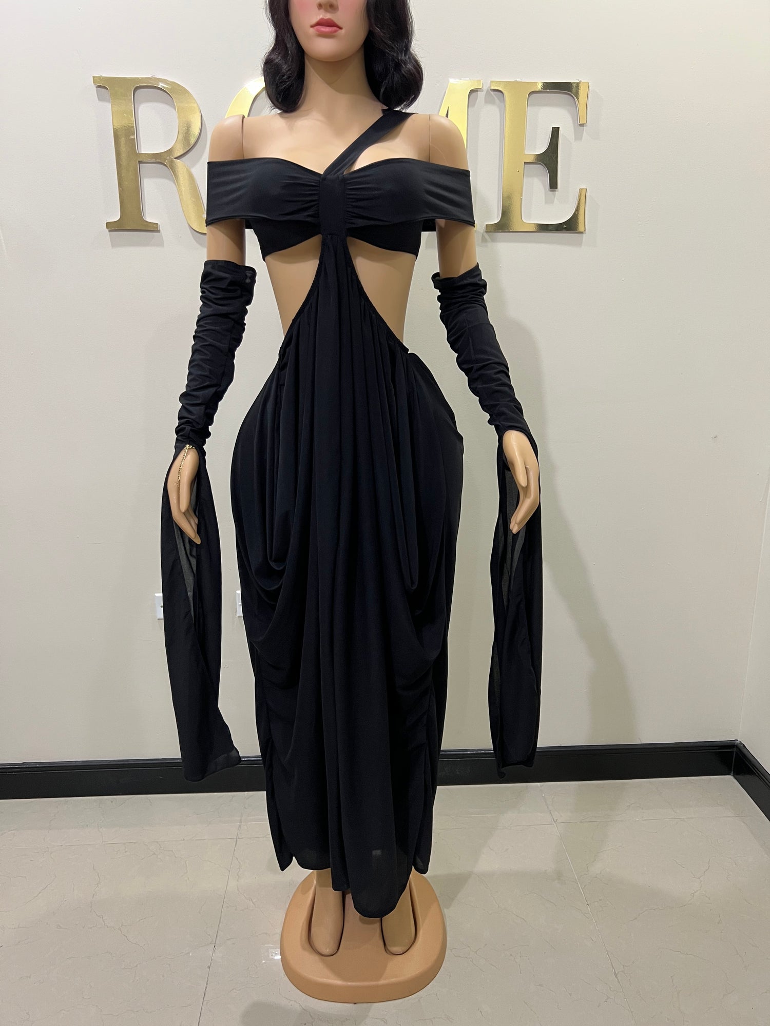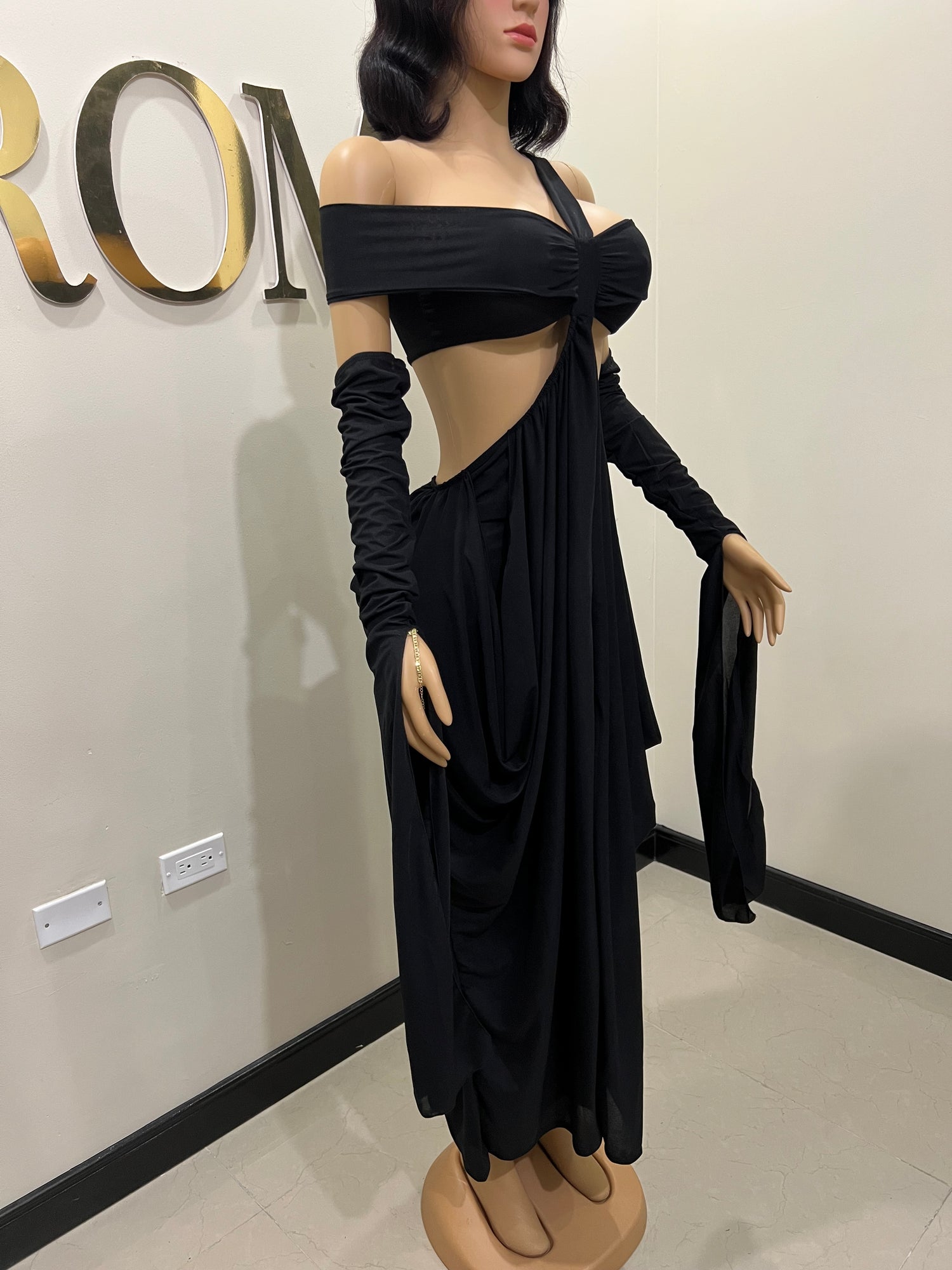 Ruby Mesh Dress with Arm Pcs (Black)