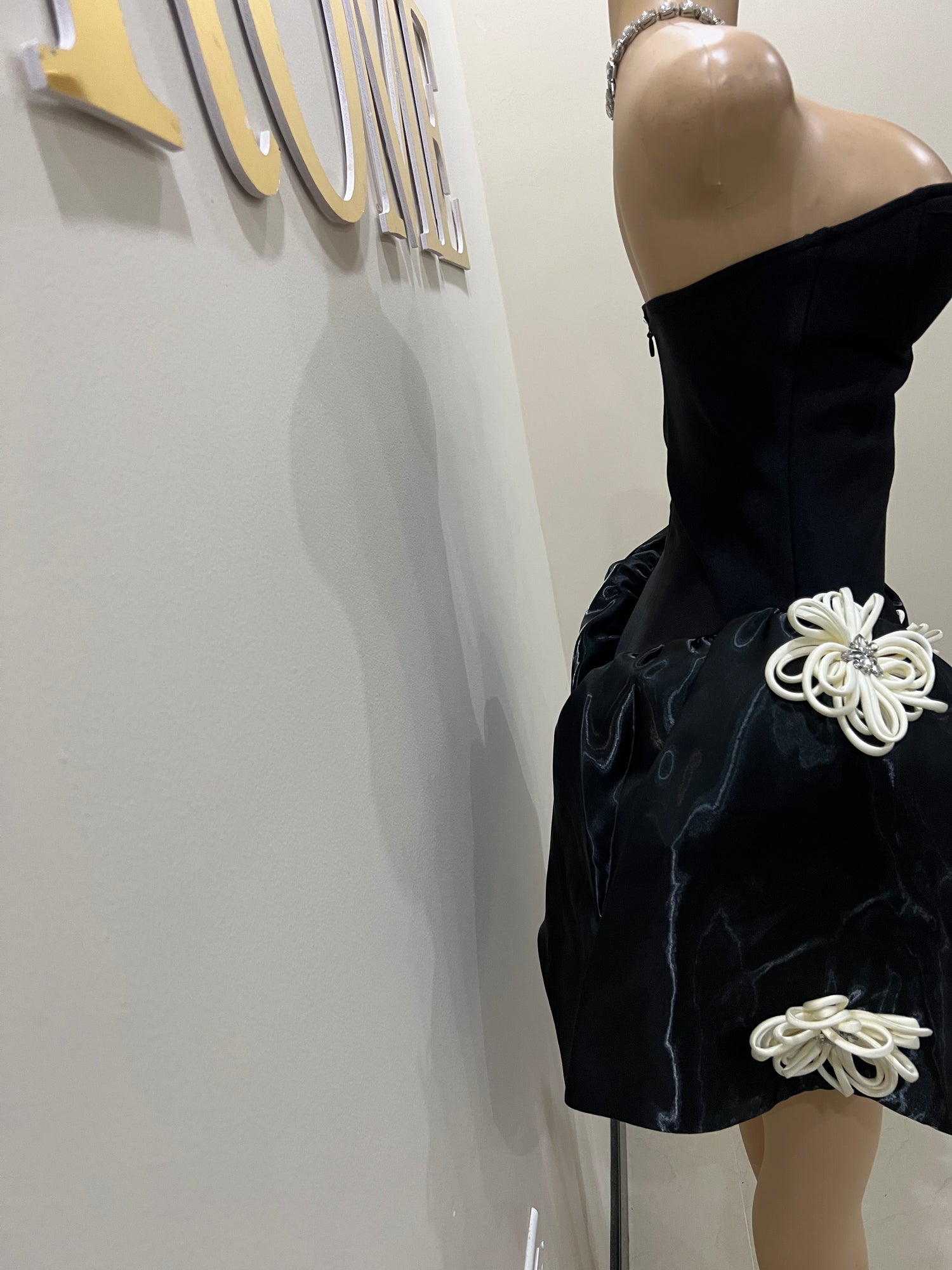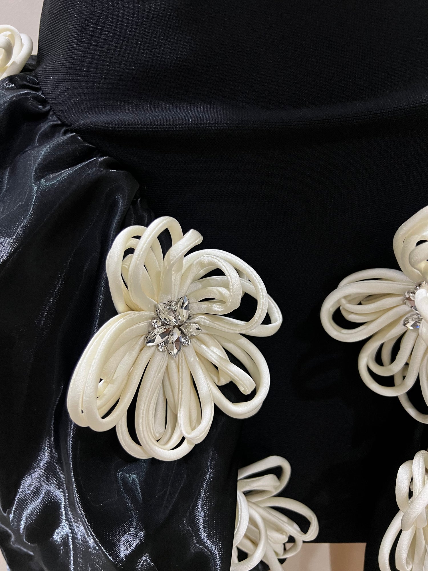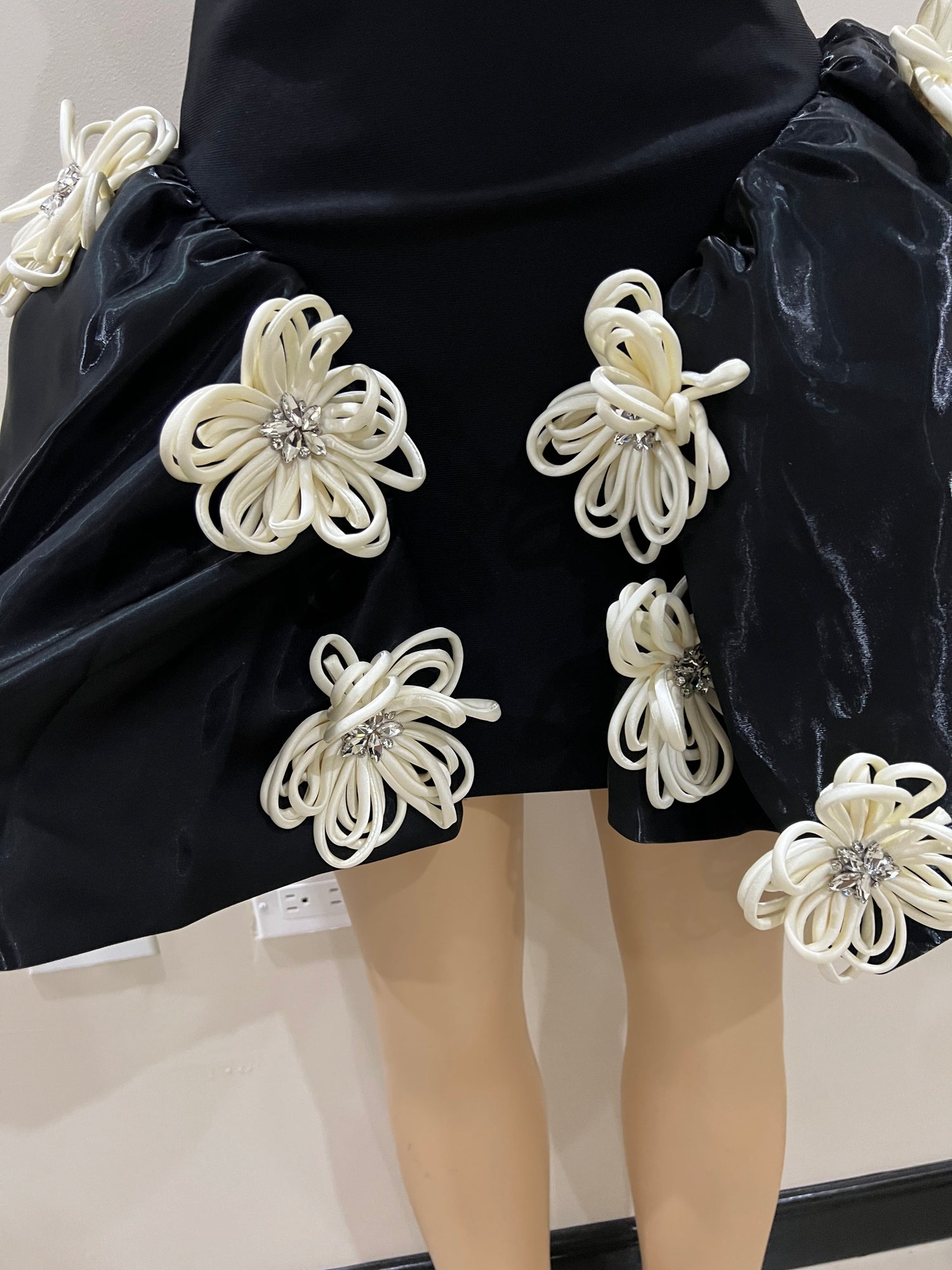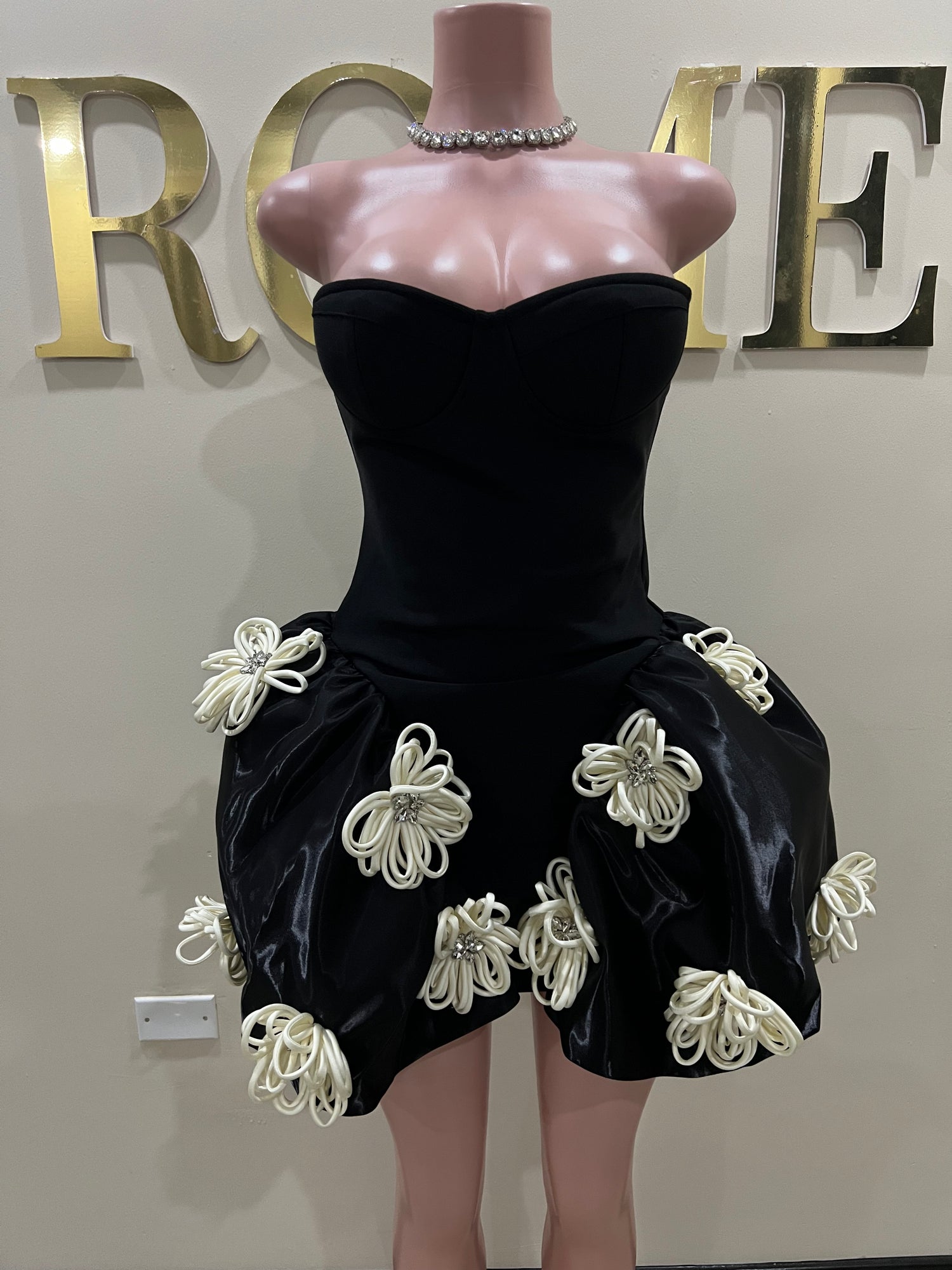 Selina Flower Crystal Bandage Glam Dress (Black)