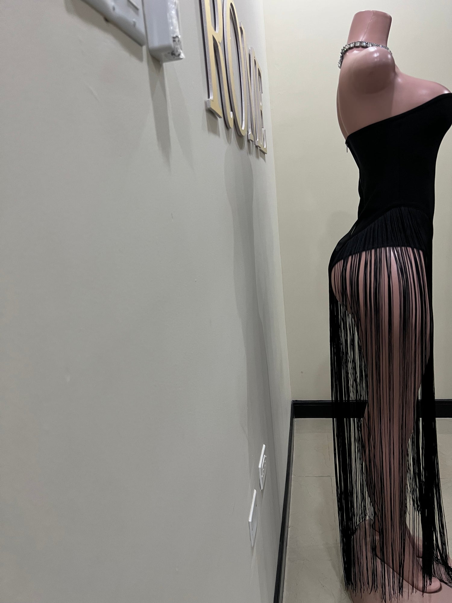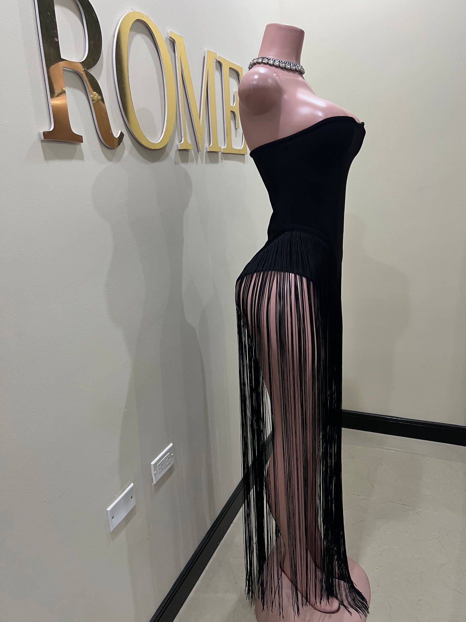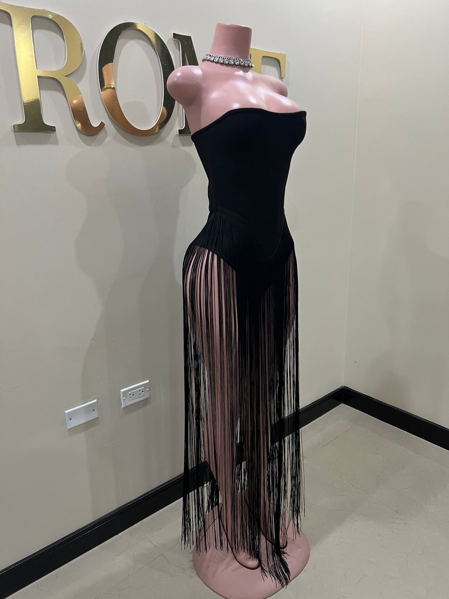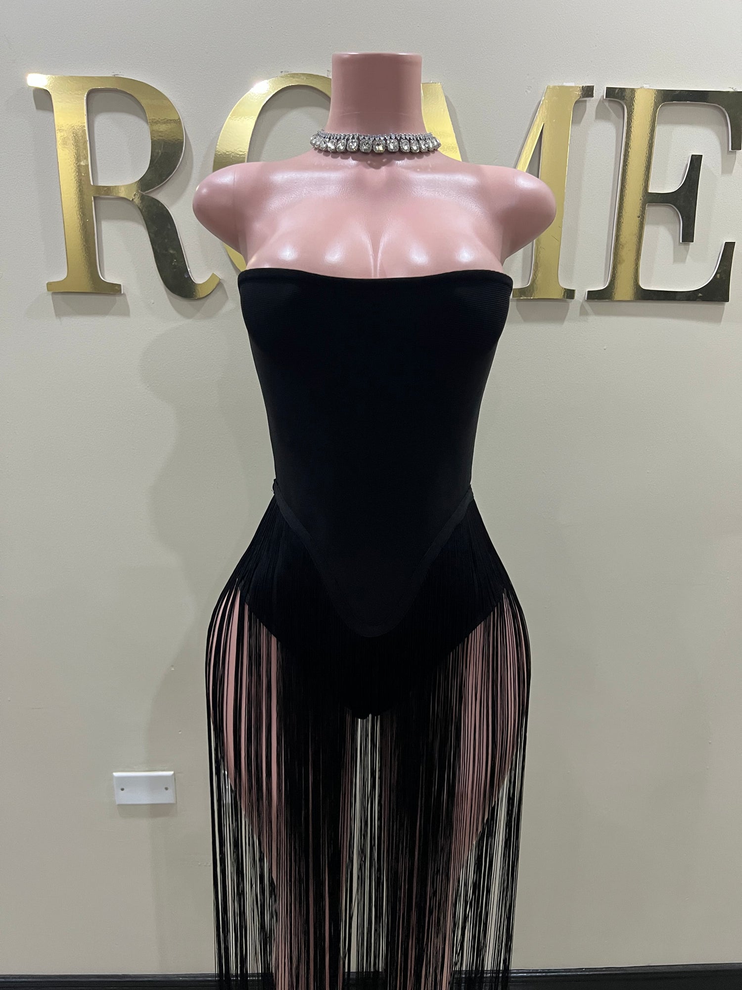 Simone Fringe Bandage Bodysuit (Black)