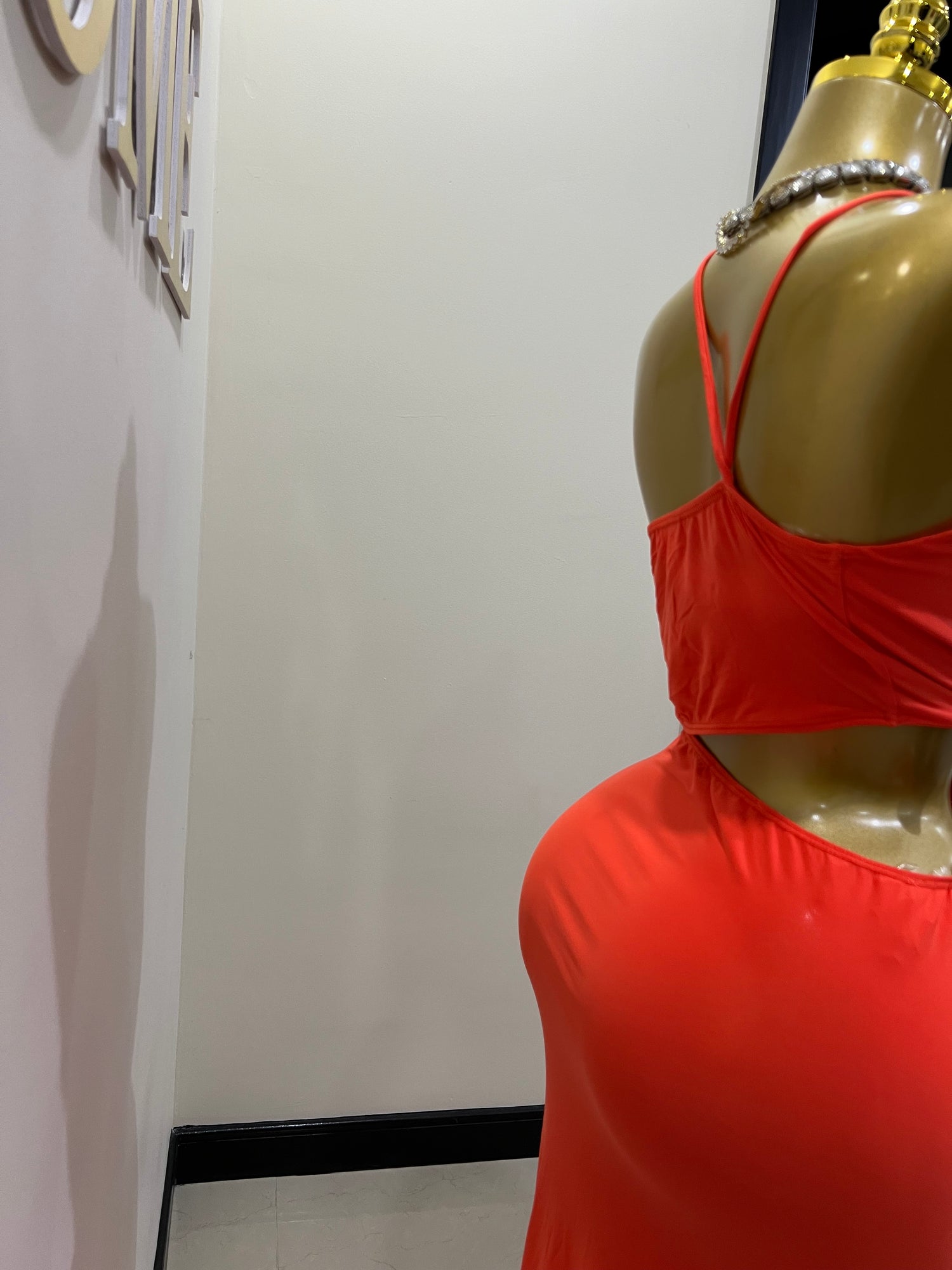 - The gold bbl mannequin is wearing size medium.